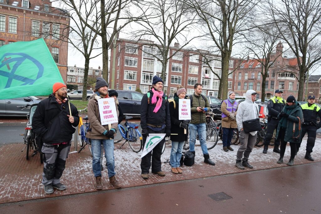 De actie is onderdeel van een Stop Nieuw Fossiel campagne waarmee XR een einde eist van alle nieuwe fossiele projecten, hier en in het buitenland. Na afloop zullen de activisten de aanwezigen opwachten met een erehaag.