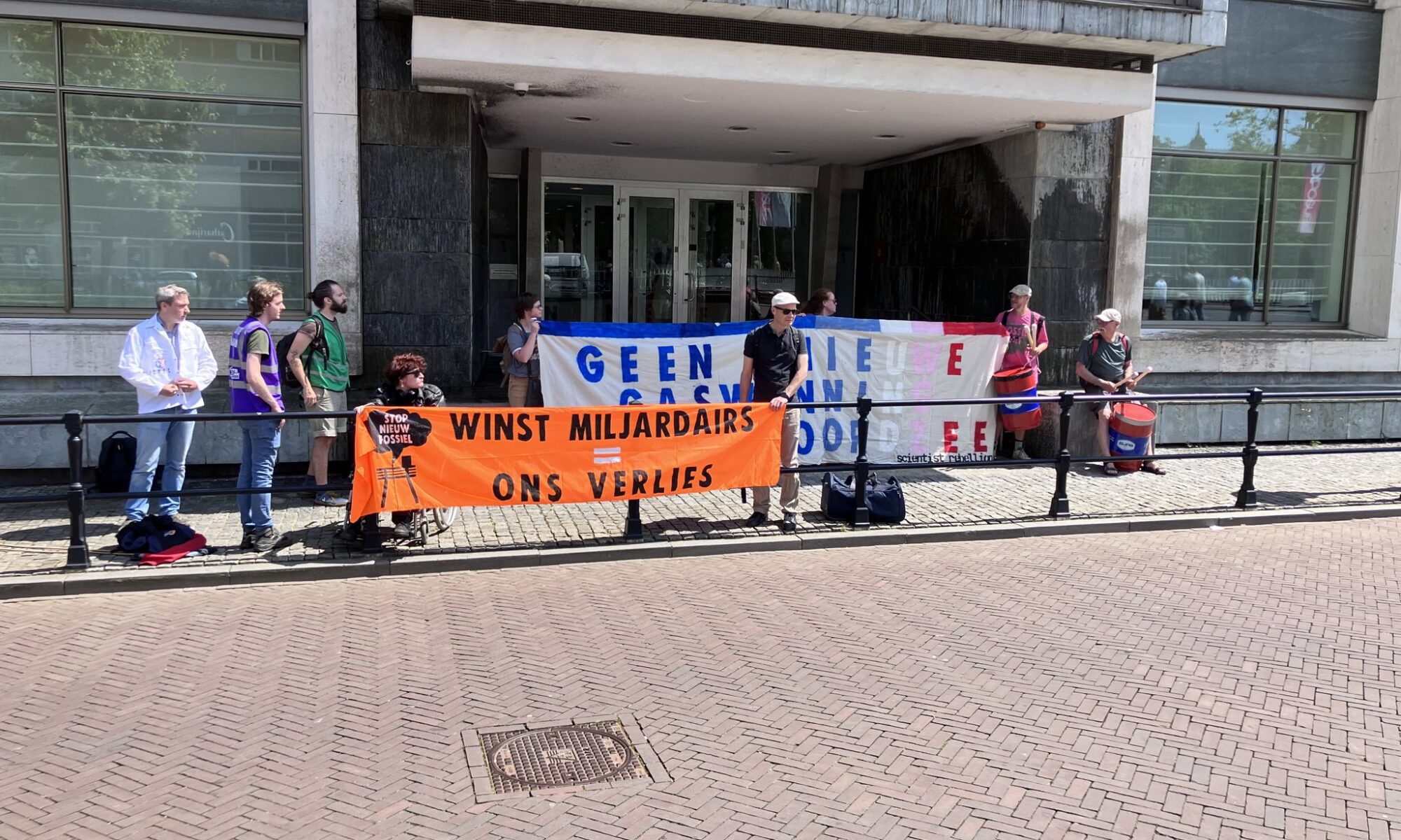 Samen met Scientist Rebellion NL hebben we het kantoor van Steenkolen Handels Vereniging (SHV) in Utrecht ondergespoten met afwasbare verf uit protest tegen de geplande gaswinning van het dochterbedrijf ONE-Dyas bij Schiermonnikoog.